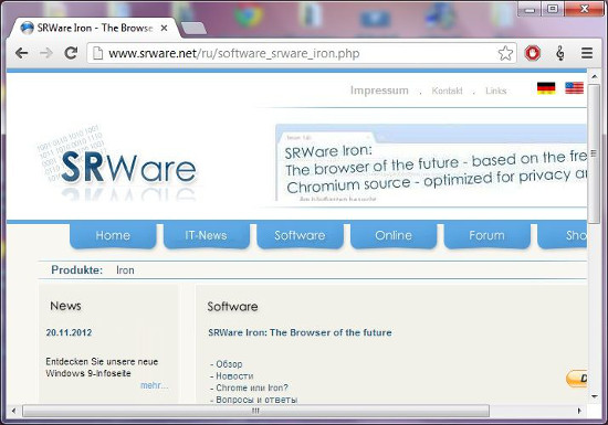 Из недостатков продукта можно упомянуть отсутствие автообновления и самого браузера и встроенного флеш-плеера. Для изучения всех возможностей ПО продвинутые пользователи могут посетить официальный сайт SRWare Iron Browser.